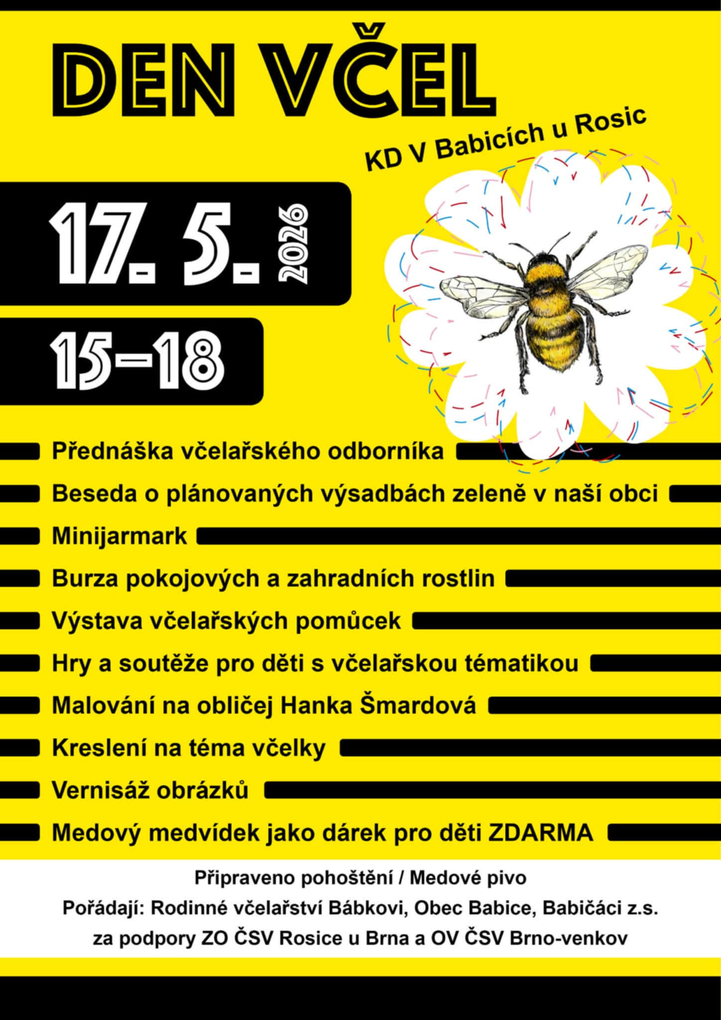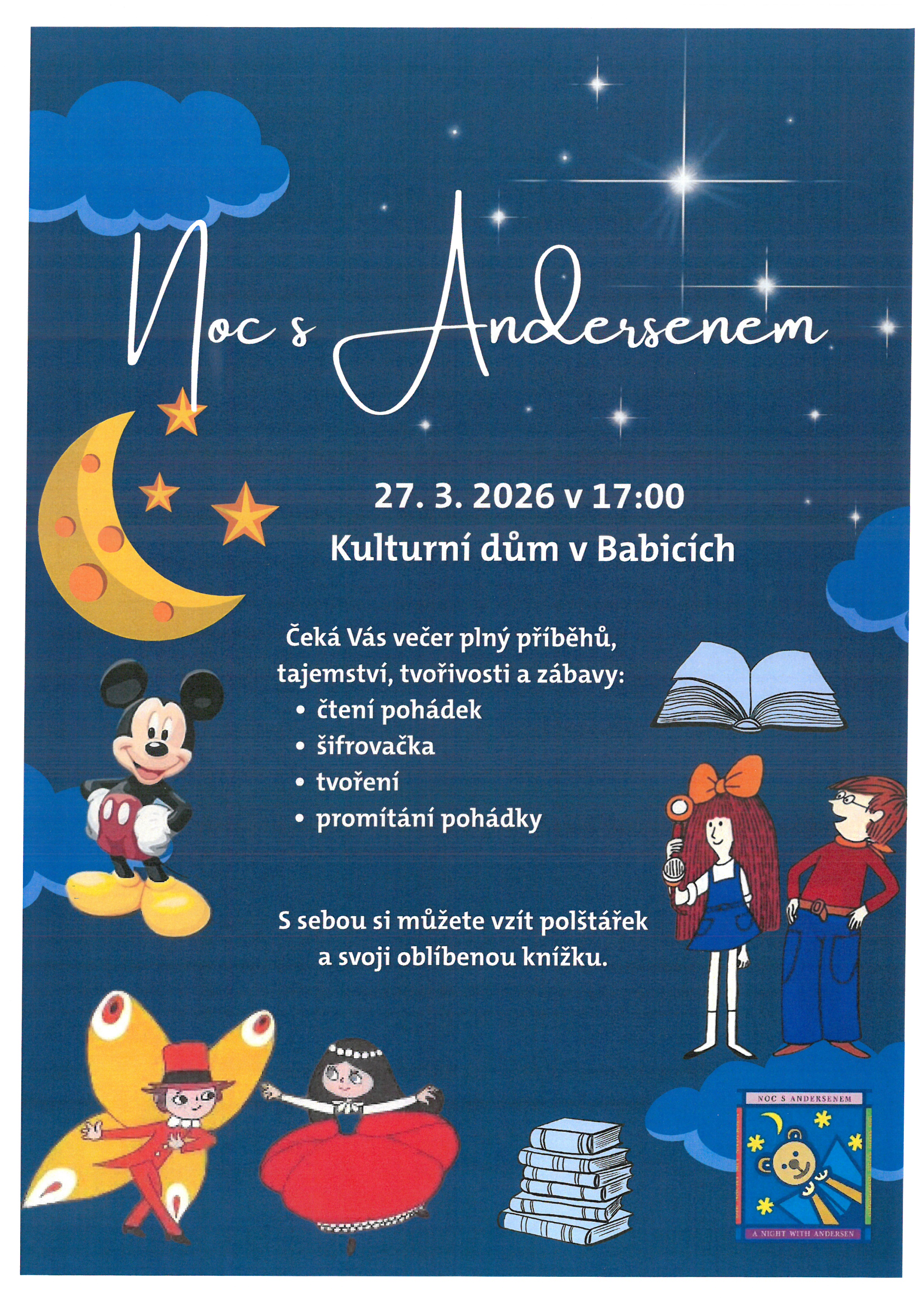 Degustace vína 2026.jpg Velikonoční tvoření.jpg Ukliďme Babice.jpg Pálení čarodějnic.jpg Den včel.jpg Noc s Andersenem.jpg